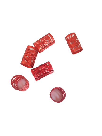 Czerwone zaciskowe koraliki, idealne na warkoczyki, dredloki, dredy, cornrows