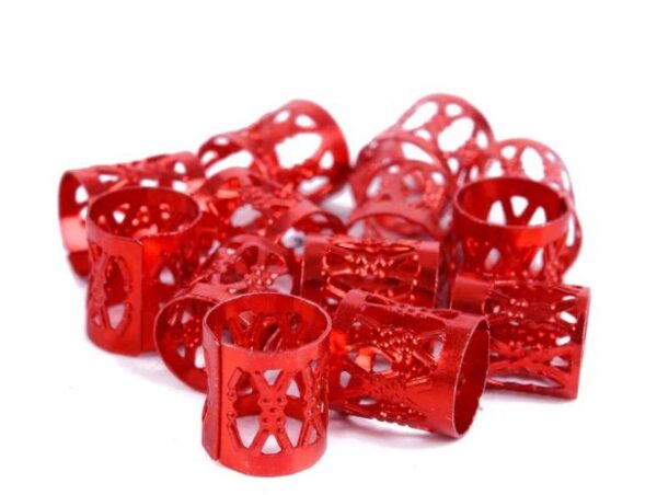Czerwone, zaciskowe, koraliki idealne na warkoczyki, dredy, dredloki