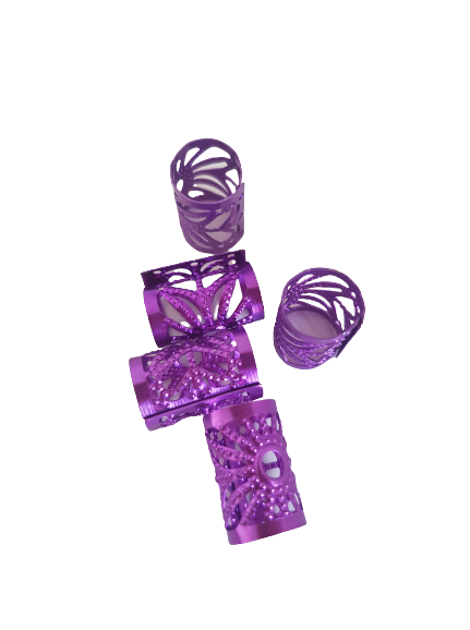 Fioletowe zaciskowe koraliki, idealne na warkoczyki, dredloki, dredy, cornrows