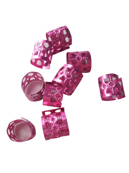 Różowe zaciskowe koraliki, idealne na grubsze warkoczyki, dredloki, dredy, cornrows