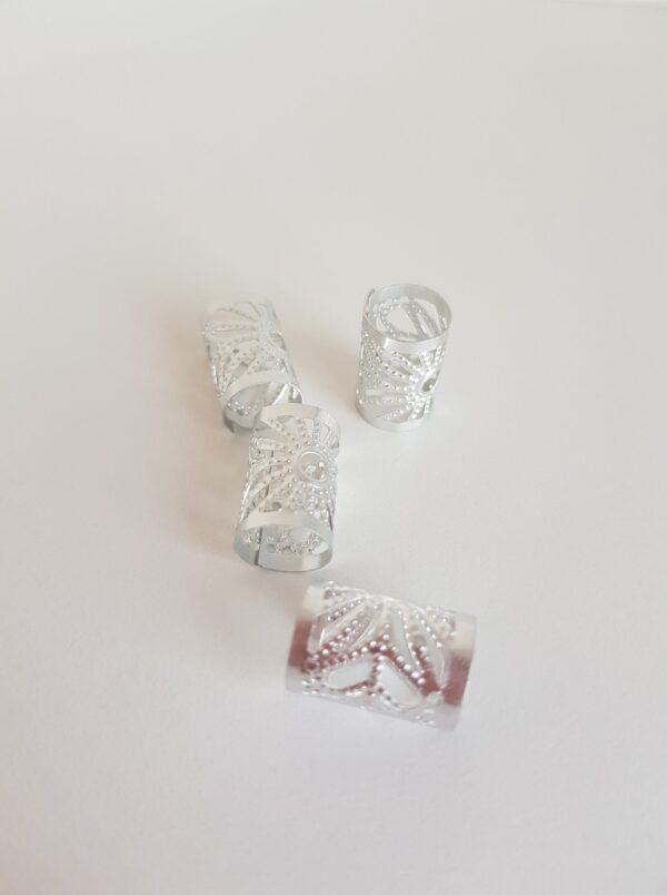 Srebrne, zaciskowe koraliki, idealne na warkoczyki, dredloki, dredy, cornrows (10×16)