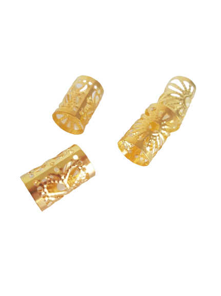 Złote, zaciskowe koraliki, idealne na warkoczyki, dredloki, dredy, cornrows (10×16)